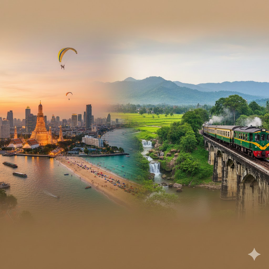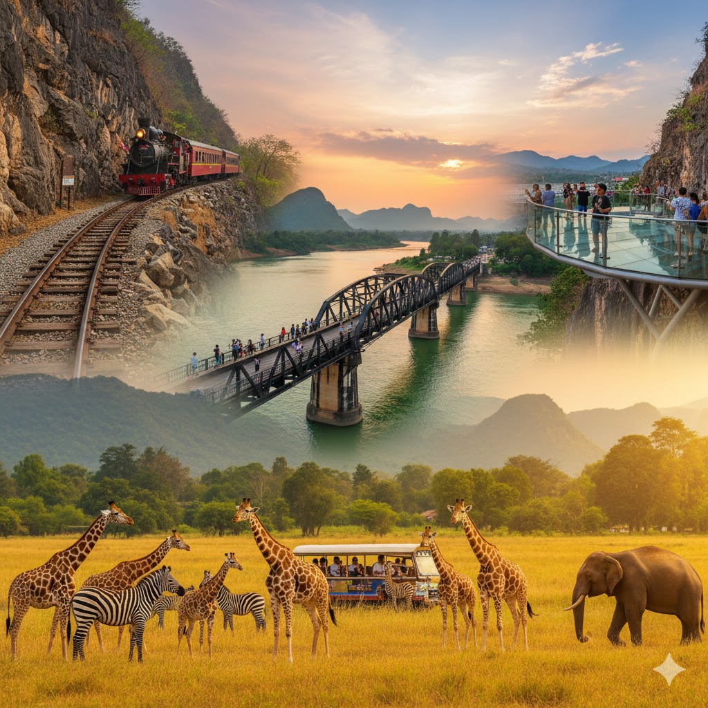 Menelusuri jejak sejarah di Jembatan Sungai Kwai dan keindahan alam air terjun yang asri.